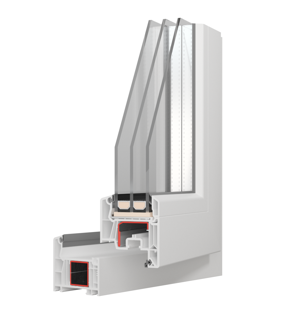 - Монтажная глубина 70-82 мм с 5-7 камерами для теплоизоляции Uf 0,83-1,1 Вт/м²·К